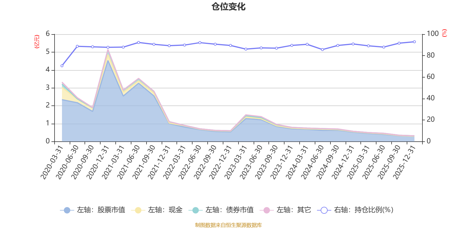 据定期报告数据统计,近三年平均股票仓位为89.03%,同类平均为84.04%。2025年末基金达到92.94%的最高仓位,2020年一季度末最低,为70.57%。