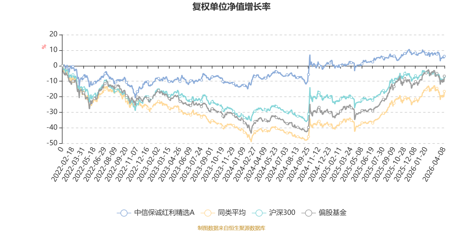 截至4月8日,中信保诚红利精选A近三个月复权单位净值增长率为-2.47%,位于同类可比基金464/689;近半年复权单位净值增长率为1.73%,位于同类可比基金385/689;近一年复权单位净值增长率为7.52%,位于同类可比基金645/685;近三年复权单位净值增长率为16.14%,位于同类可比基金188/417。