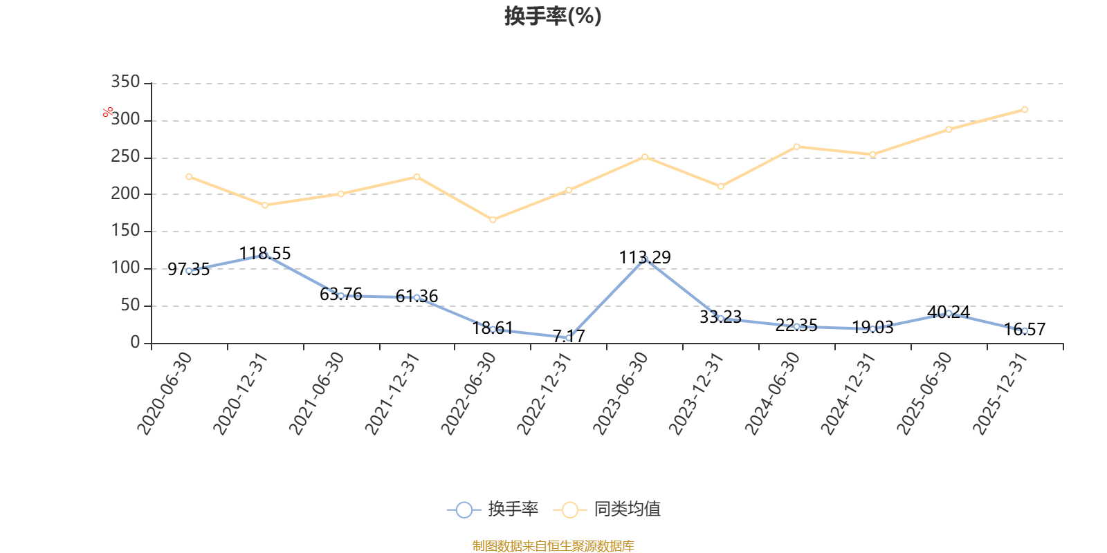 截至2025年12月31日,基金最近一年换手率约60.22%,持续低于同类均值。
