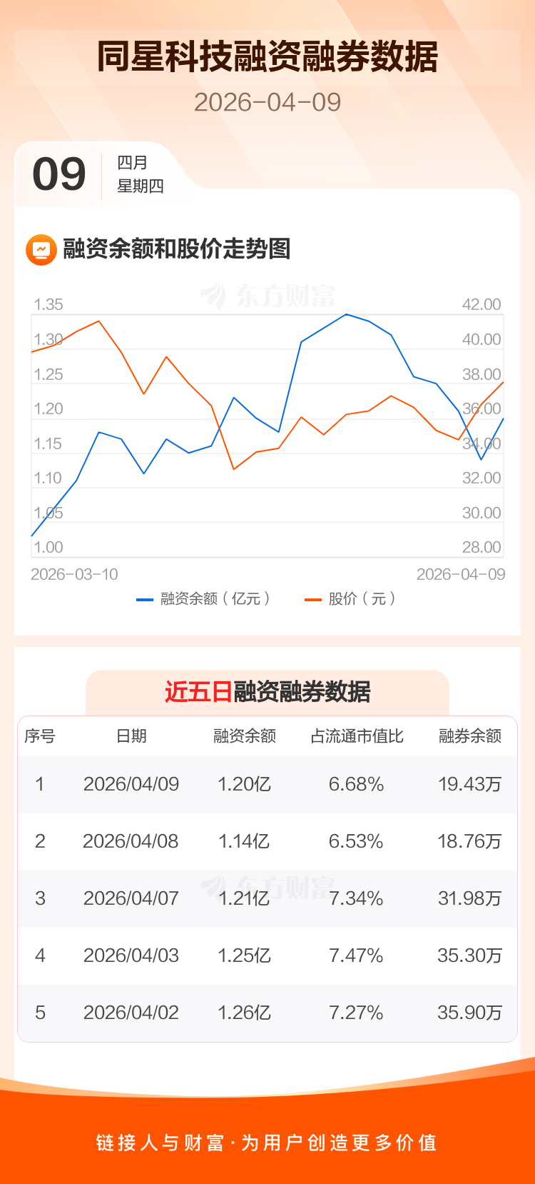 交易所最新数据显示,同星科技于2026年4月9日获融资买入1919.92万元,融资偿还1240.60万元,当日融资净买入679.32万元。目前,该股融资余额1.20亿,占流通市值比例为6.68%。