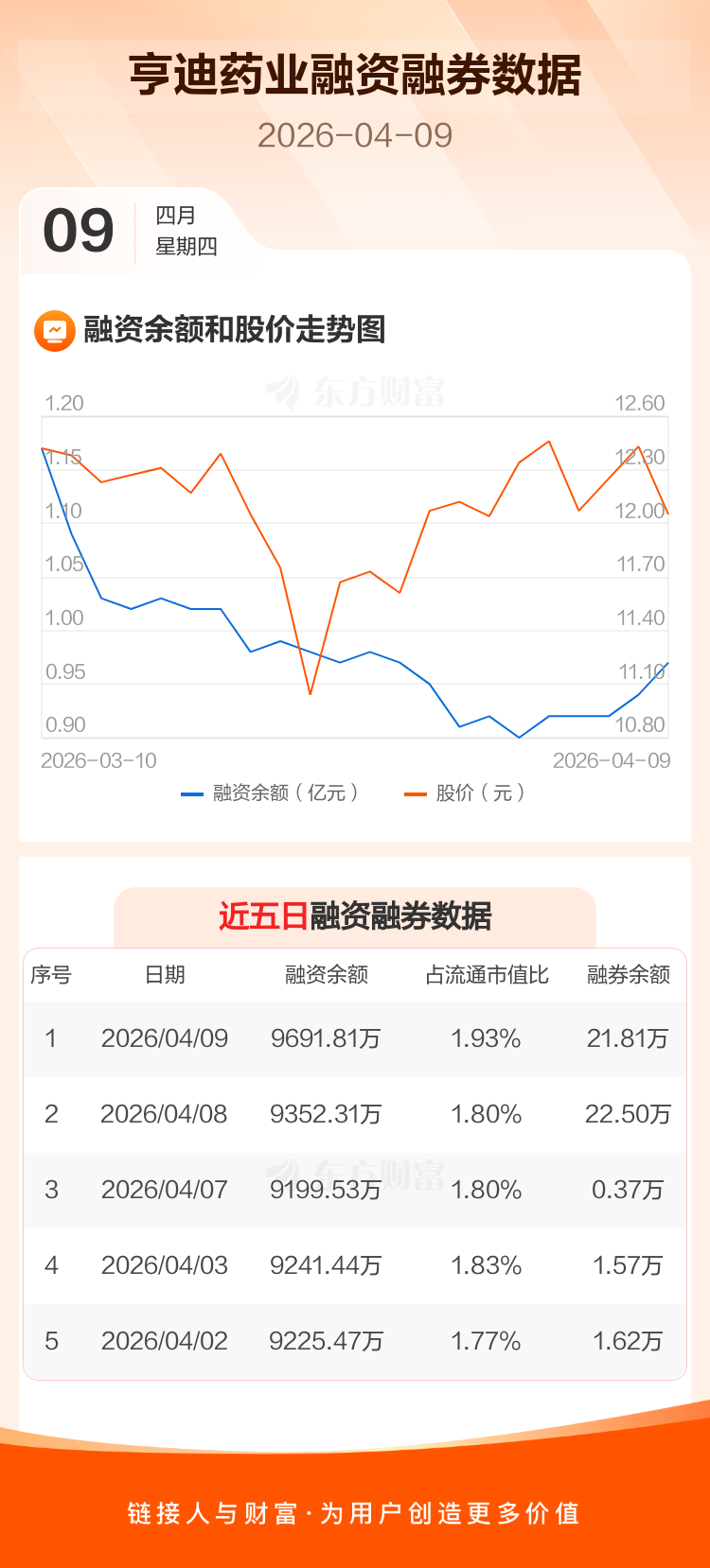 交易所最新数据显示,亨迪药业于2026年4月9日获融资买入894.44万元,融资偿还554.95万元,当日融资净买入339.49万元。目前,该股融资余额9691.81万,占流通市值比例为1.93%。