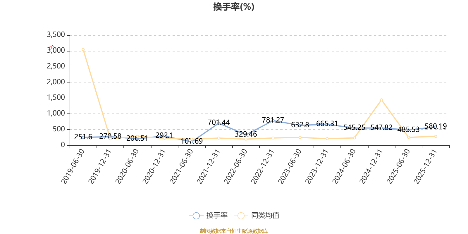 截至2025年12月31日,基金最近一年换手率约1022.61%,持续1年高于同类均值。