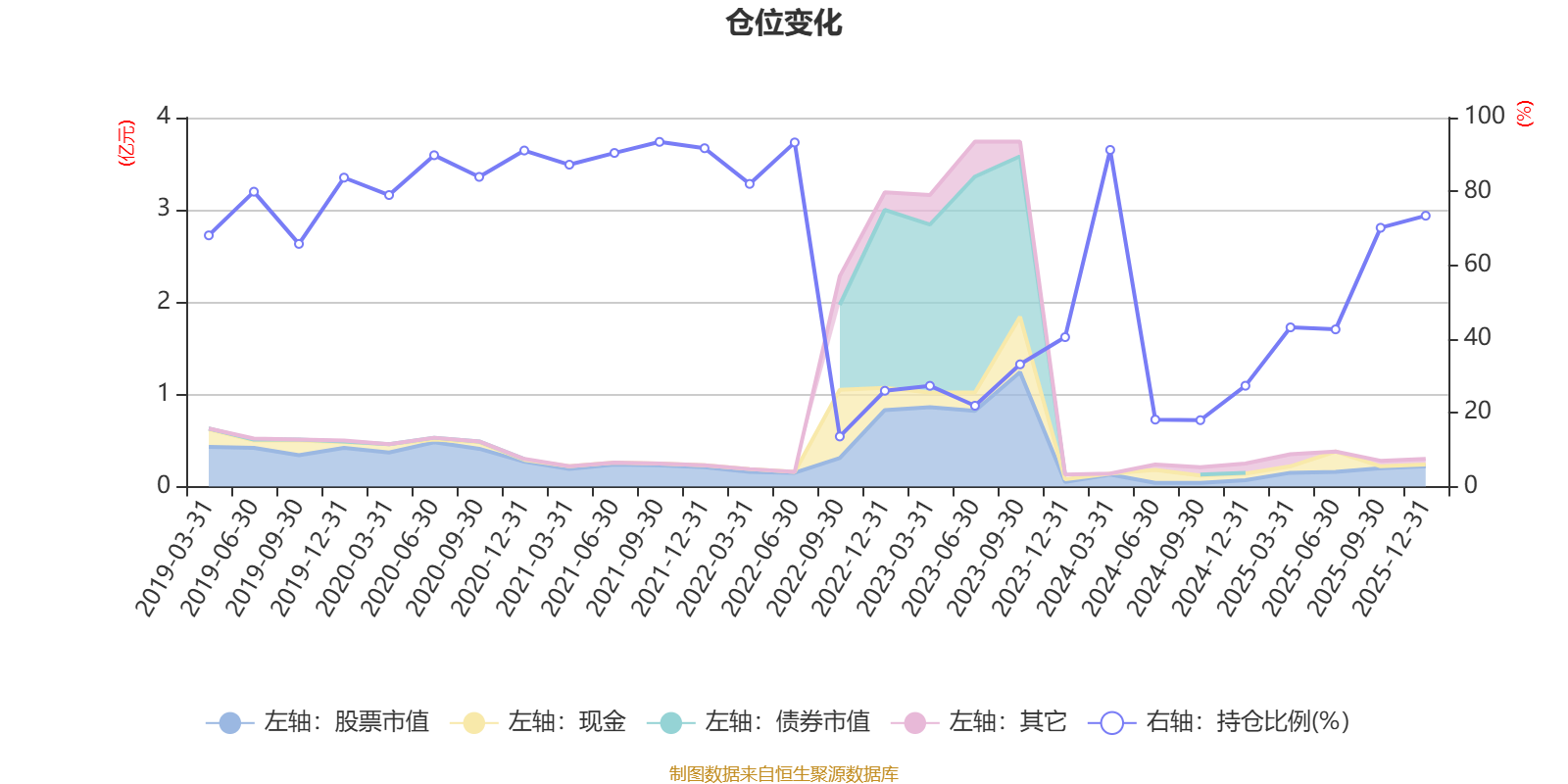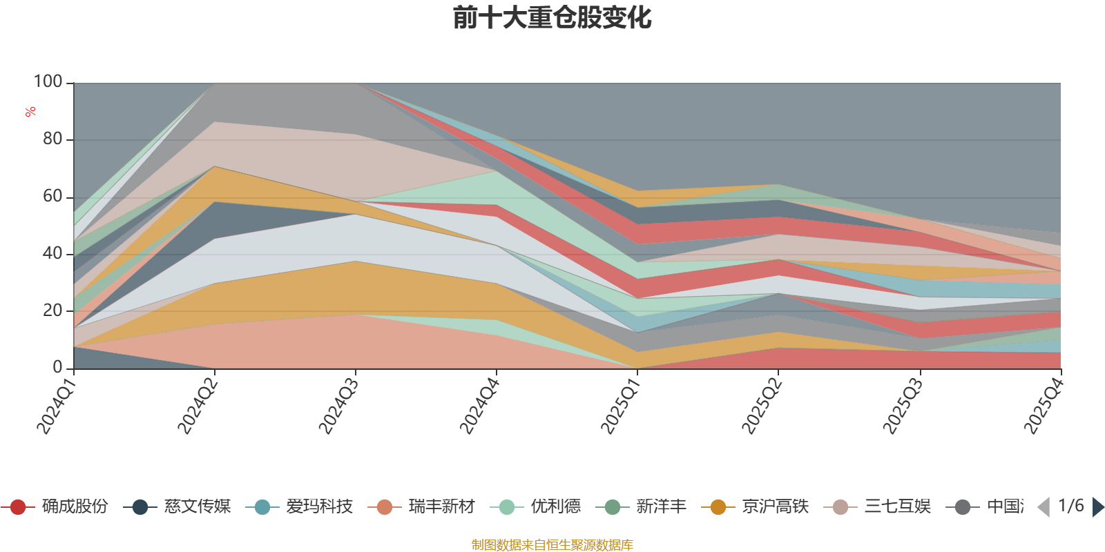 截至2025年末,基金十大重仓股分别是确成股份、海信视像、日月股份、银都股份、健盛集团、海油发展、爱玛科技、海尔智家、南钢股份、新洋丰。