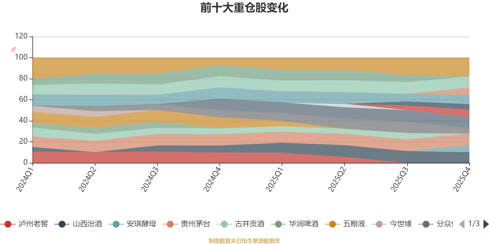 该基金持股集中度较高,近2年前十大重仓股集中度长期超过60%。截至2025年末,基金十大重仓股分别是贵州茅台、腾讯控股、阿里巴巴-W、山西汾酒、中国海洋石油、海大集团、三一重工、安琪酵母、分众传媒、新产业。