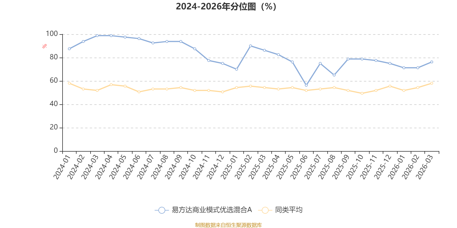 通过所选区间该基金净值增长率分位图,可以观察该基金与同类基金业绩比较情况。图为坐标原点到区间内某时点的净值增长率在同类基金中的分位数。