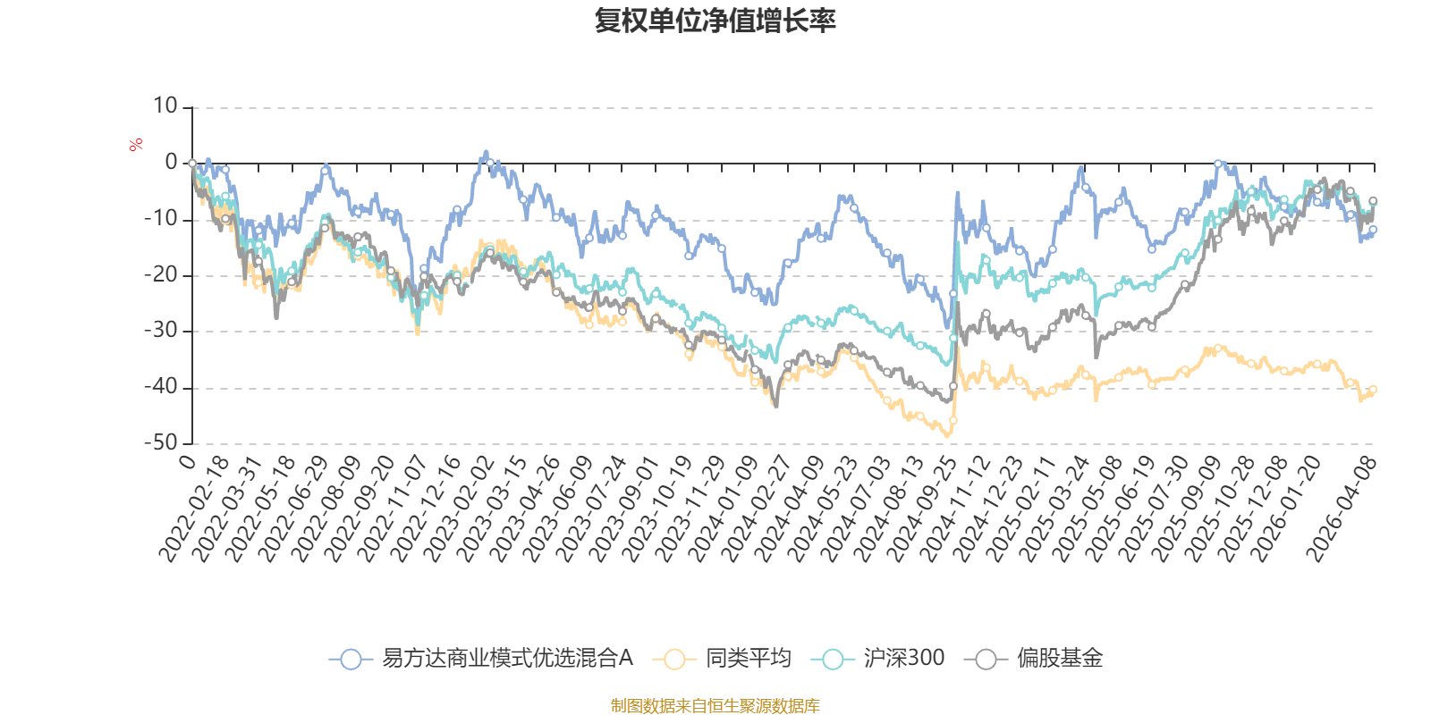 截至4月8日,易方达商业模式优选混合A近三个月复权单位净值增长率为-4.48%,位于同类可比基金21/85;近半年复权单位净值增长率为-11.21%,位于同类可比基金42/85;近一年复权单位净值增长率为-0.54%,位于同类可比基金45/85;近三年复权单位净值增长率为-6.70%,位于同类可比基金13/76。