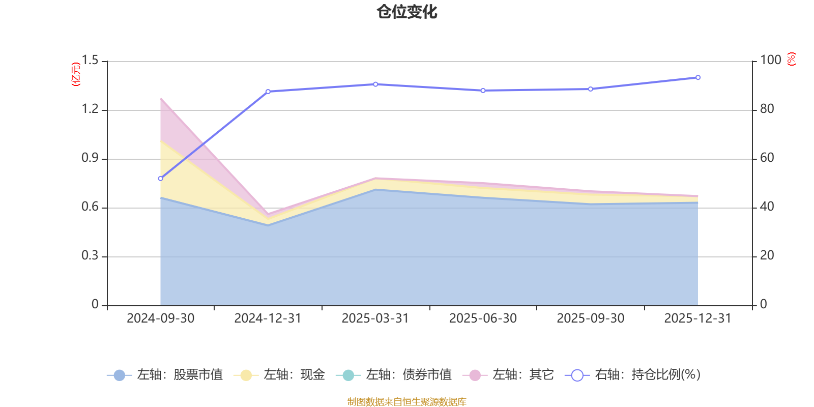据定期报告数据统计,成立以来平均股票仓位为83.28%,同类平均为84.04%。2025年末基金达到93.29%的最高仓位,2024年三季度末最低,为51.9%。