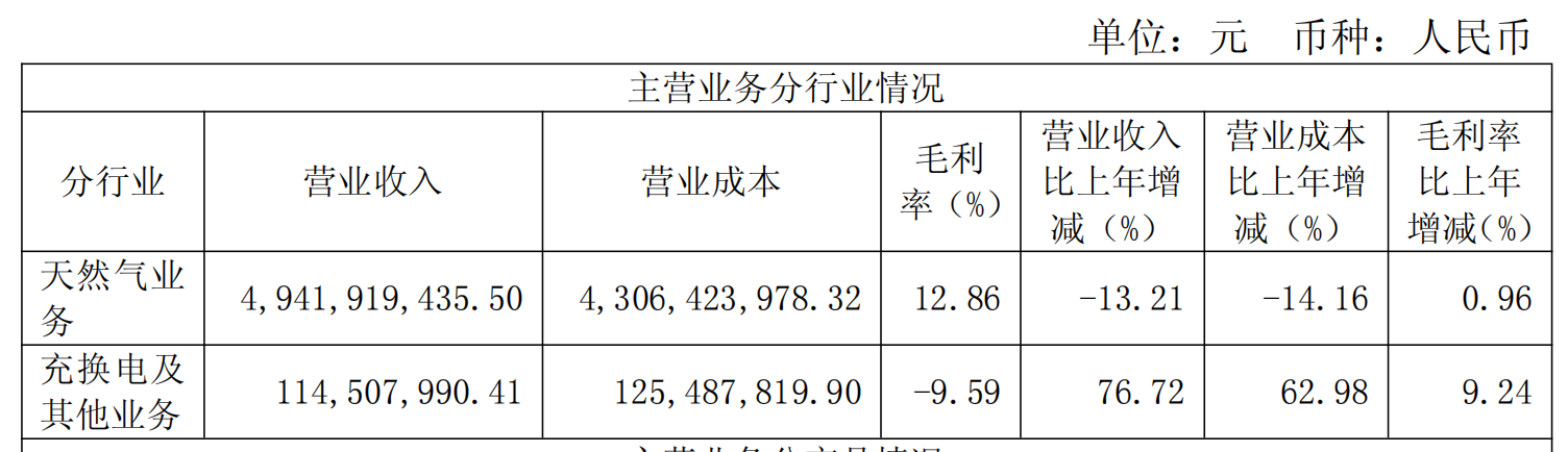 面对传统业务的增长瓶颈,皖天然气将目光投向综合能源领域,尤其是新能源汽车充换电业务。分行业来看,2025年,该板块收入同比暴增76.72%至1.15亿元,看似亮眼,但实则毛利率为-9.59%。