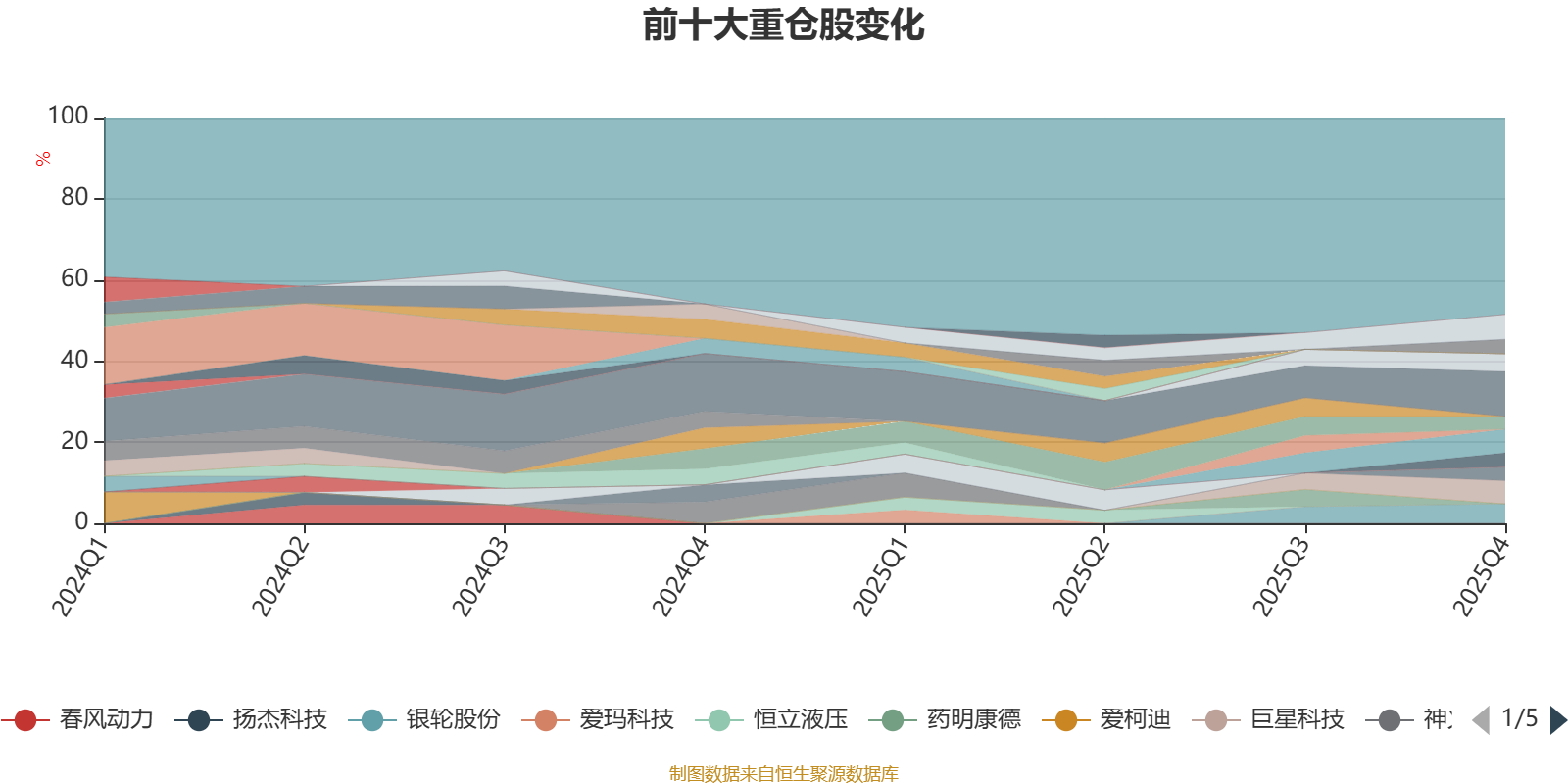 截至2025年末,基金十大重仓股分别是华峰铝业、紫金矿业、宁德时代、巨星科技、银轮股份、海力风电、生益科技、中钨高新、巨化股份、海大集团。