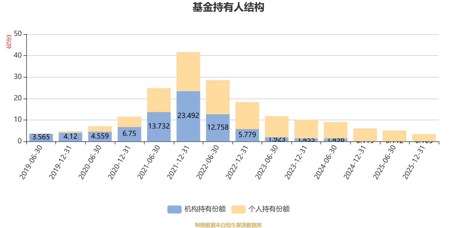 截至2025年12月31日,基金持有人共计5.25万户,合计持有3.48亿份。其中管理人员工持有78.98万份,占比0.23%,机构持有份额占比3.02%,个人投资者占比96.98%。