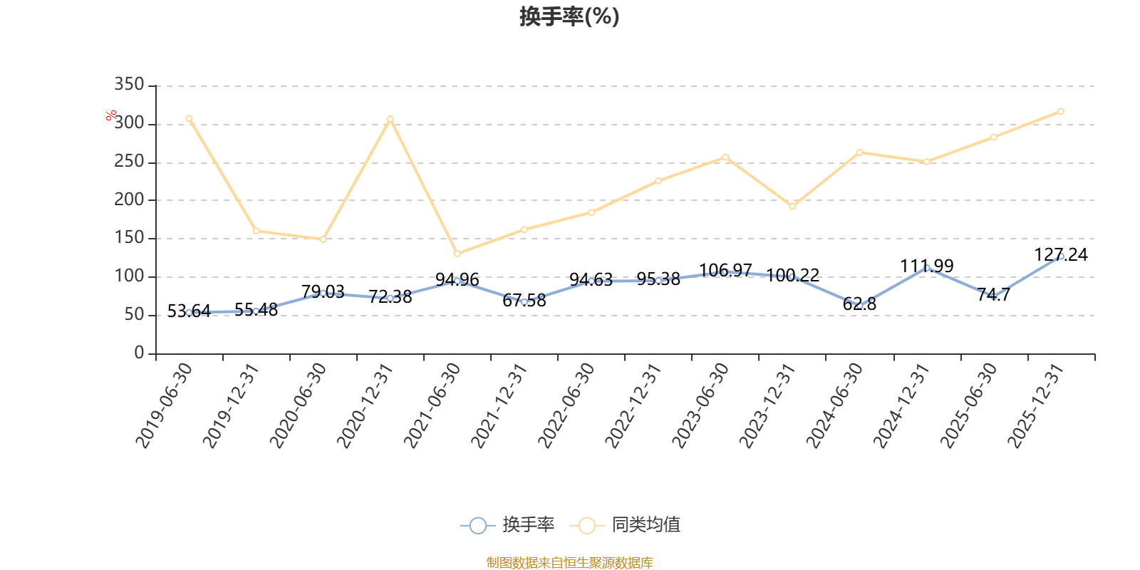 截至2025年12月31日,基金最近一年换手率约197.53%,持续低于同类均值。