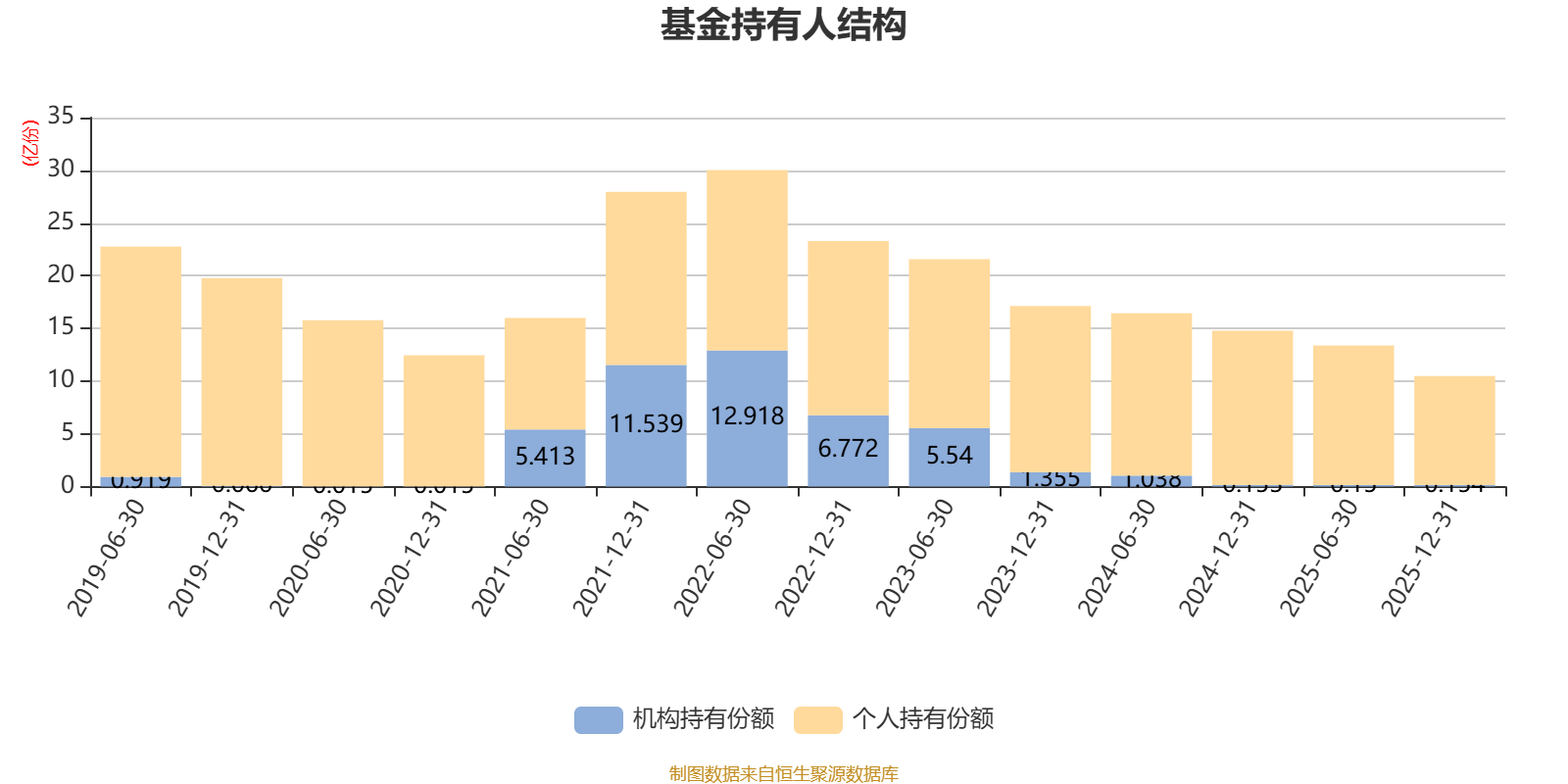 截至2025年12月31日,基金持有人共计11.8万户,合计持有10.49亿份。其中管理人员工持有223.45万份,占比0.21%,机构持有份额占比1.47%,个人投资者占比98.53%。