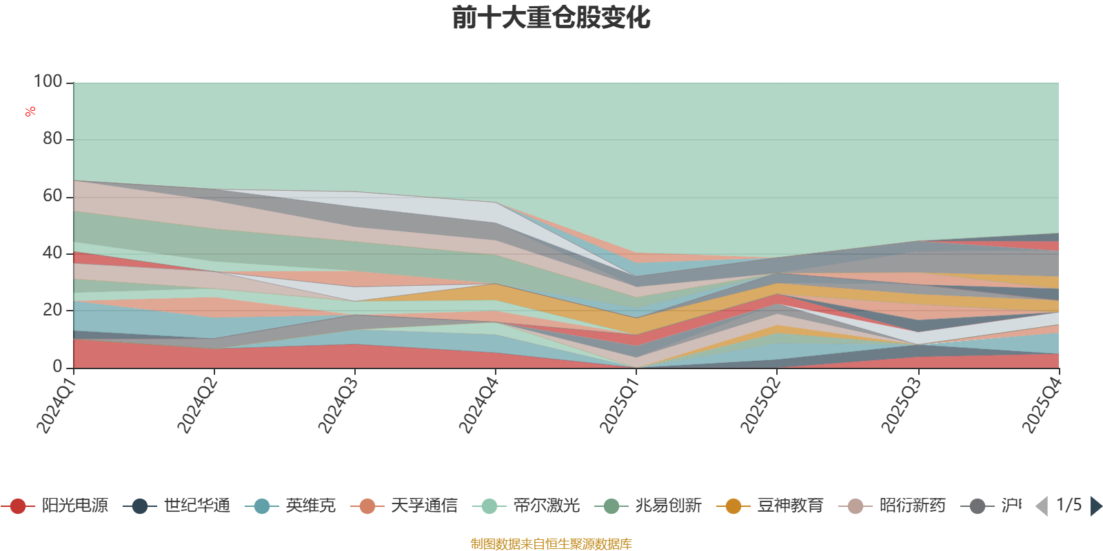 截至2025年末,基金十大重仓股分别是中际旭创、英维克、阳光电源、芯原股份、振华股份、隆基绿能、应流股份、信维通信、华正新材、天孚通信。