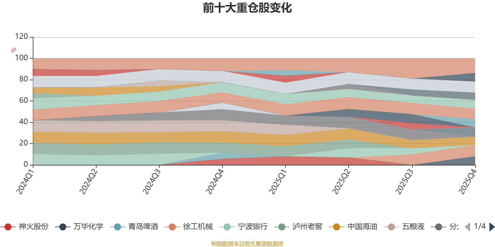 该基金持股集中度较高,近2年前十大重仓股集中度长期超过60%。截至2025年末,基金十大重仓股分别是徐工机械、贵州茅台、山西汾酒、海大集团、古井贡酒、紫金矿业、万华化学、华泰证券、中国海油、安琪酵母。