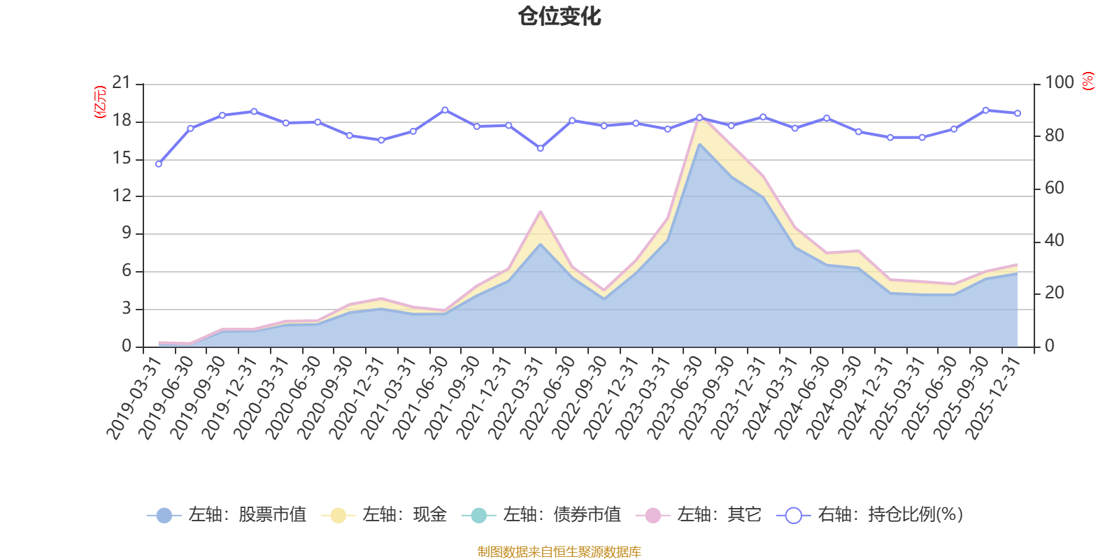 据定期报告数据统计,近三年平均股票仓位为84.52%,同类平均为72.57%。2021年上半年末基金达到90.06%的最高仓位,2019年一季度末最低,为69.55%。