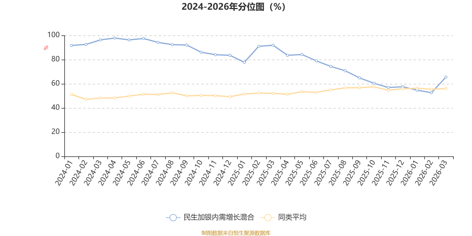 通过所选区间该基金净值增长率分位图,可以观察该基金与同类基金业绩比较情况。图为坐标原点到区间内某时点的净值增长率在同类基金中的分位数。