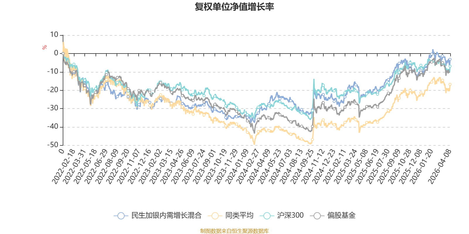 截至4月8日,民生加银内需增长混合近三个月复权单位净值增长率为0.14%,位于同类可比基金308/621;近半年复权单位净值增长率为0.08%,位于同类可比基金364/621;近一年复权单位净值增长率为32.36%,位于同类可比基金410/618;近三年复权单位净值增长率为25.60%,位于同类可比基金207/559。