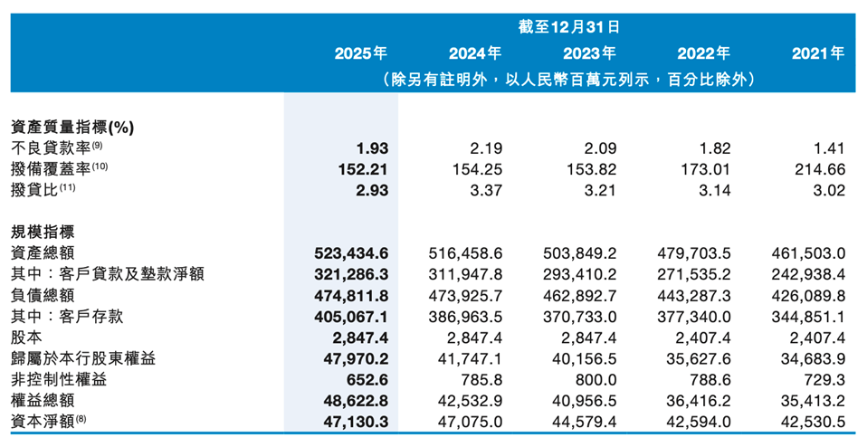 资产质量方面,截至2025年末,九江银行不良贷款总额为63.35亿元,不良贷款率为1.93%,较上年末下降0.26个百分点。虽然不良率指标有所改善,但1.93%的不良率仍显著高于上市城商行平均水平。