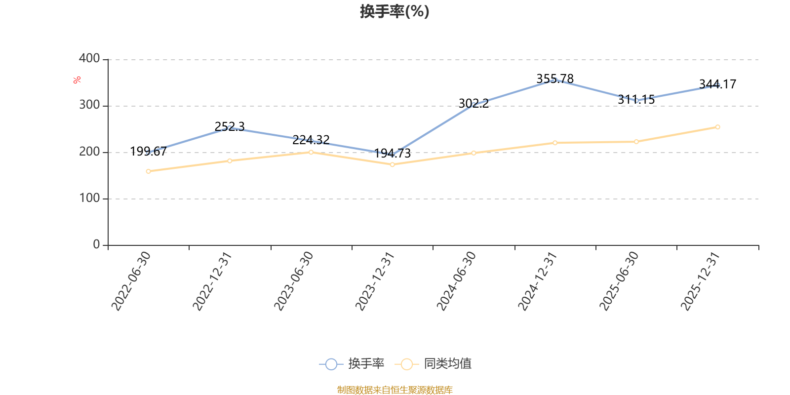 截至2025年12月31日,基金最近一年换手率约677.09%,持续高于同类均值。