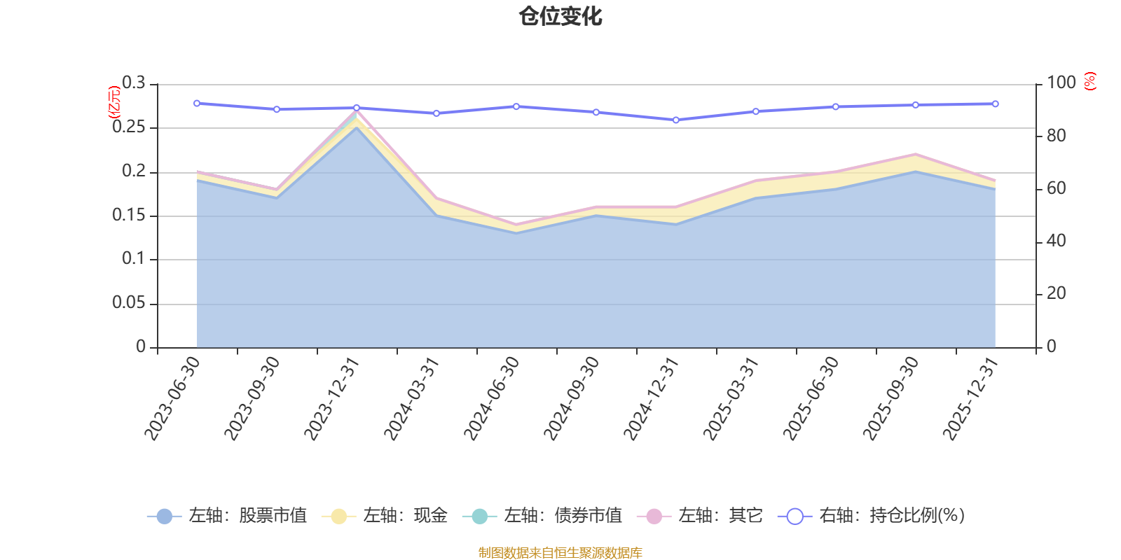据定期报告数据统计,成立以来平均股票仓位为90.5%,同类平均为86.9%。2023年上半年末基金达到92.68%的最高仓位,2024年末最低,为86.33%。