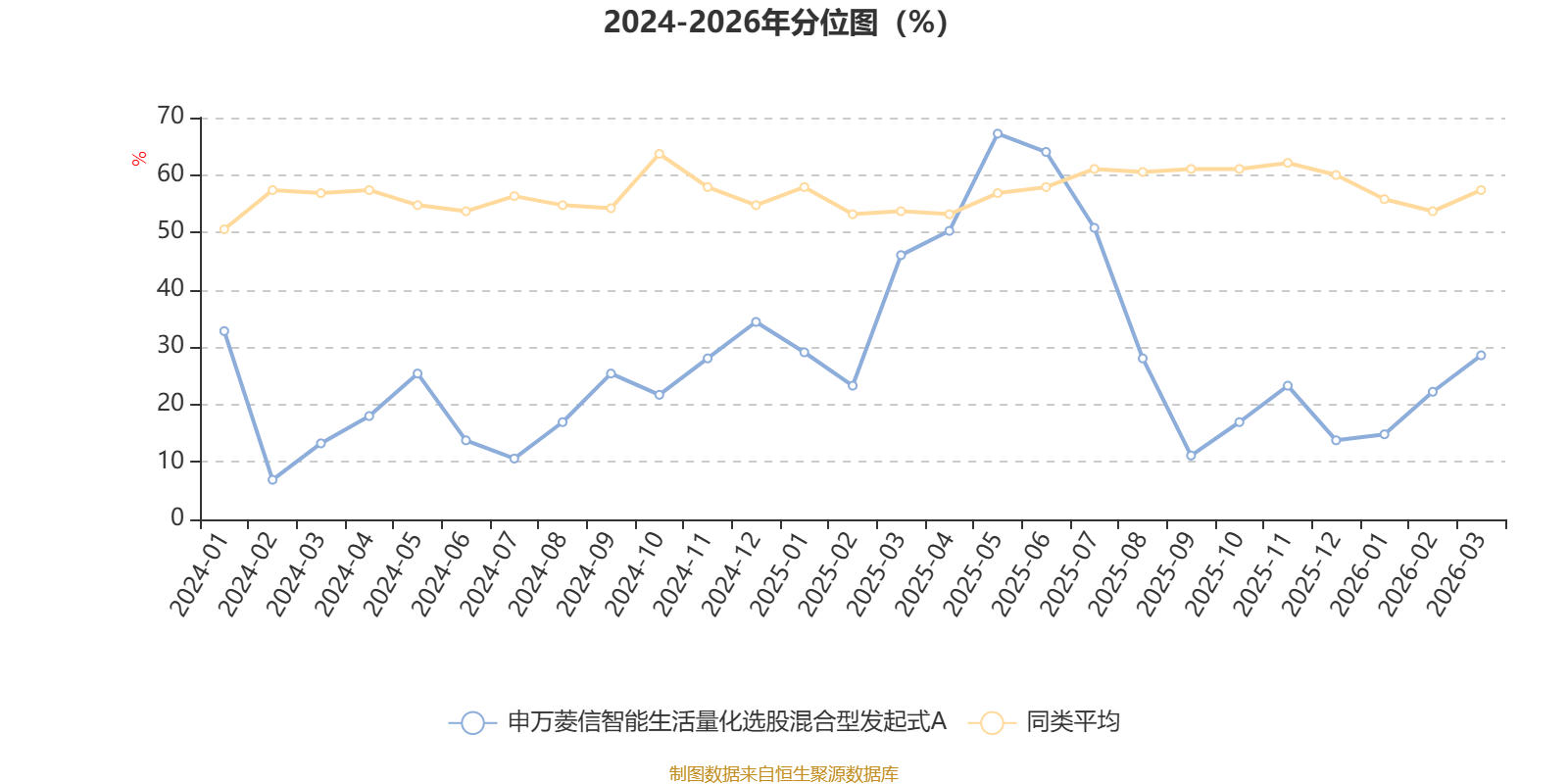 通过所选区间该基金净值增长率分位图,可以观察该基金与同类基金业绩比较情况。图为坐标原点到区间内某时点的净值增长率在同类基金中的分位数。