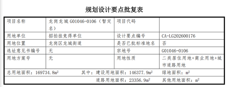 根据出让公告,该地块位于龙岗大运片区,为高标准打造深圳东部中心国际化街区,土地面积近17万平方米,总建筑面积约47.68万平方米。