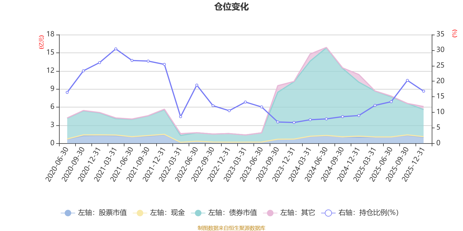 据定期报告数据统计,近三年平均股票仓位为11.2%,同类平均为19.2%。2021年一季度末基金达到30.42%的最高仓位,2023年末最低,为6.72%。