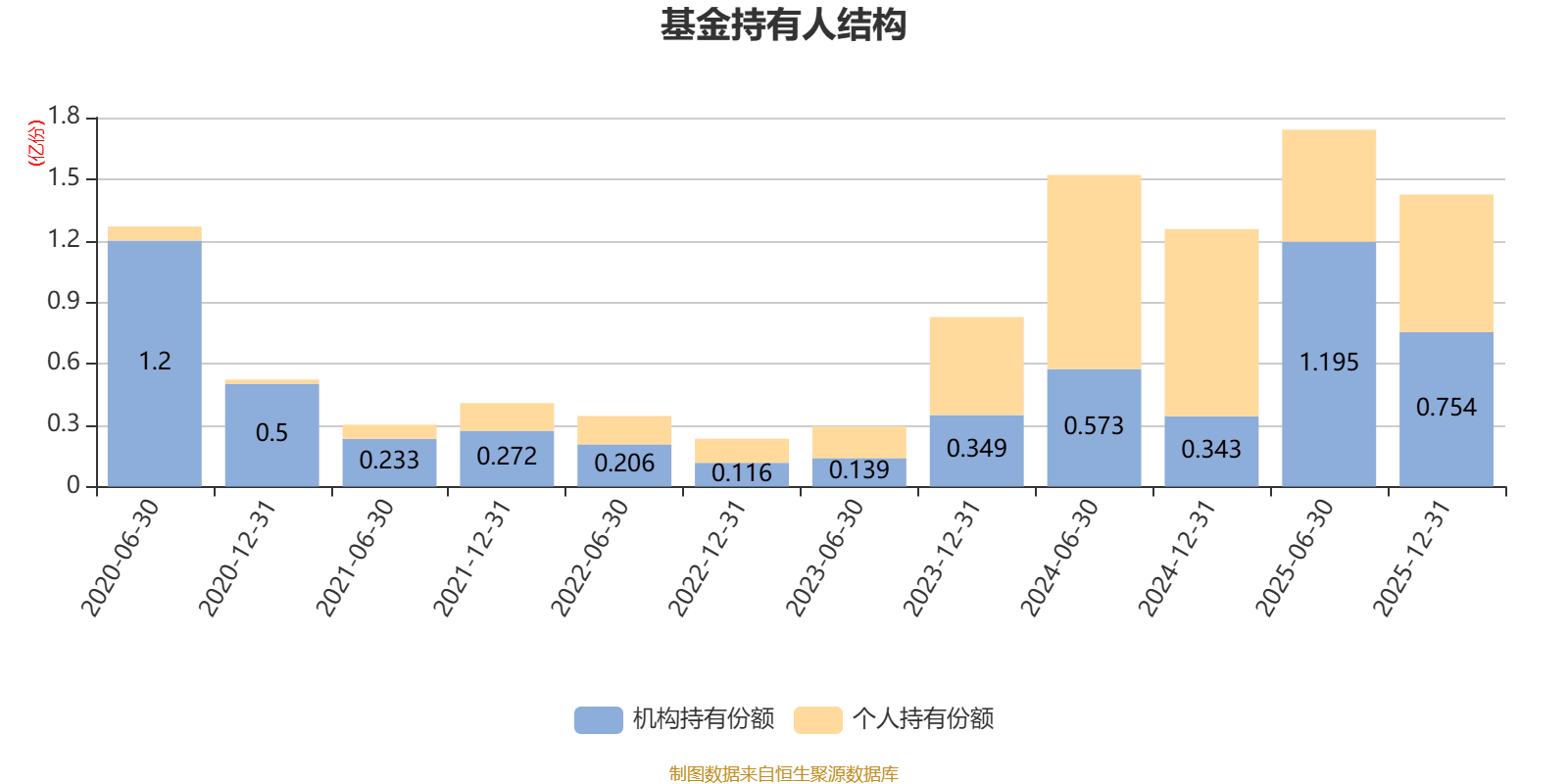 截至2025年12月31日,基金持有人共计1942户,合计持有1.42亿份。其中管理人员工持有286.11万份,占比2.01%,机构持有份额占比52.91%,个人投资者占比47.09%。