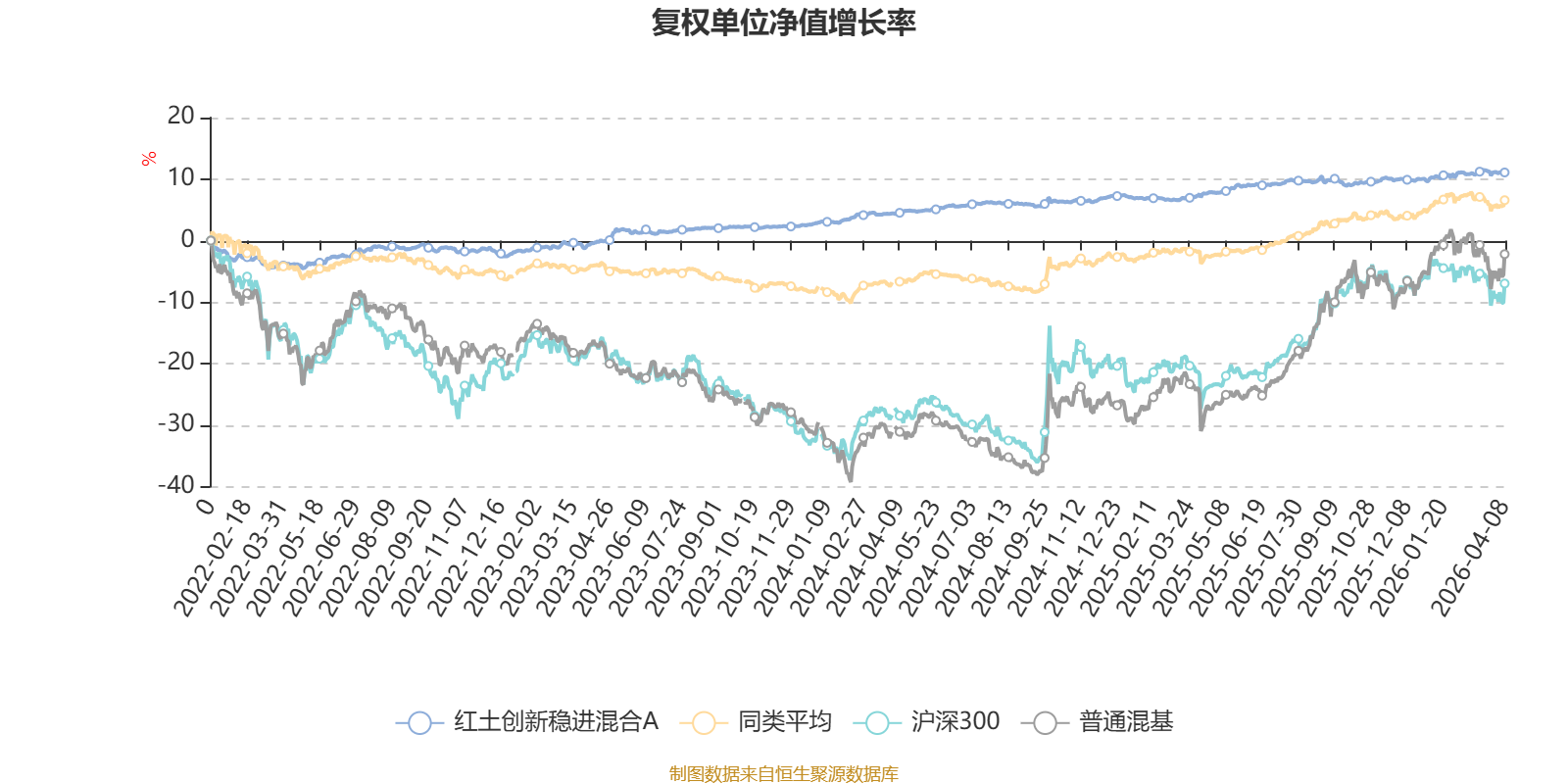 截至4月8日,红土创新稳进混合A近三个月复权单位净值增长率为0.79%,位于同类可比基金239/629;近半年复权单位净值增长率为1.80%,位于同类可比基金261/629;近一年复权单位净值增长率为3.37%,位于同类可比基金543/629;近三年复权单位净值增长率为11.60%,位于同类可比基金261/581。
