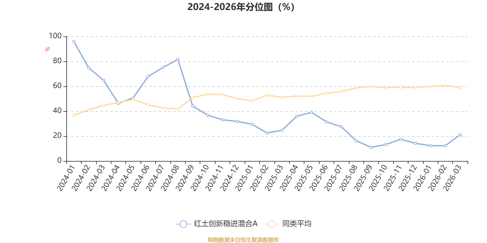 通过所选区间该基金净值增长率分位图,可以观察该基金与同类基金业绩比较情况。图为坐标原点到区间内某时点的净值增长率在同类基金中的分位数。