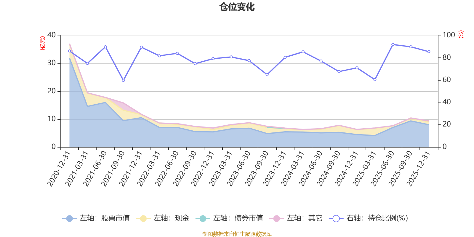 据定期报告数据统计,近三年平均股票仓位为77.75%,同类平均为86.12%。2025年上半年末基金达到91.96%的最高仓位,2021年三季度末最低,为59.81%。
