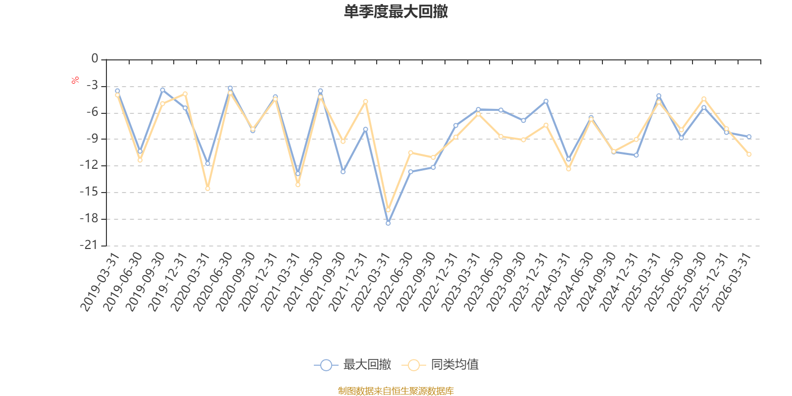 截至4月8日,基金近三年最大回撤为22.46%,同类可比基金排名43/122。单季度最大回撤出现在2022年一季度,为18.46%。