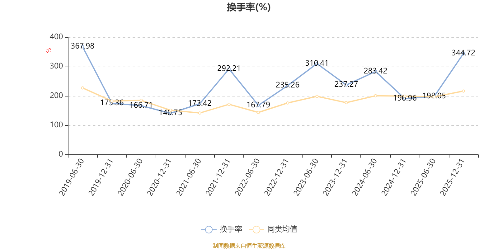 截至2025年12月31日,基金最近一年换手率约543.91%,持续1年高于同类均值。