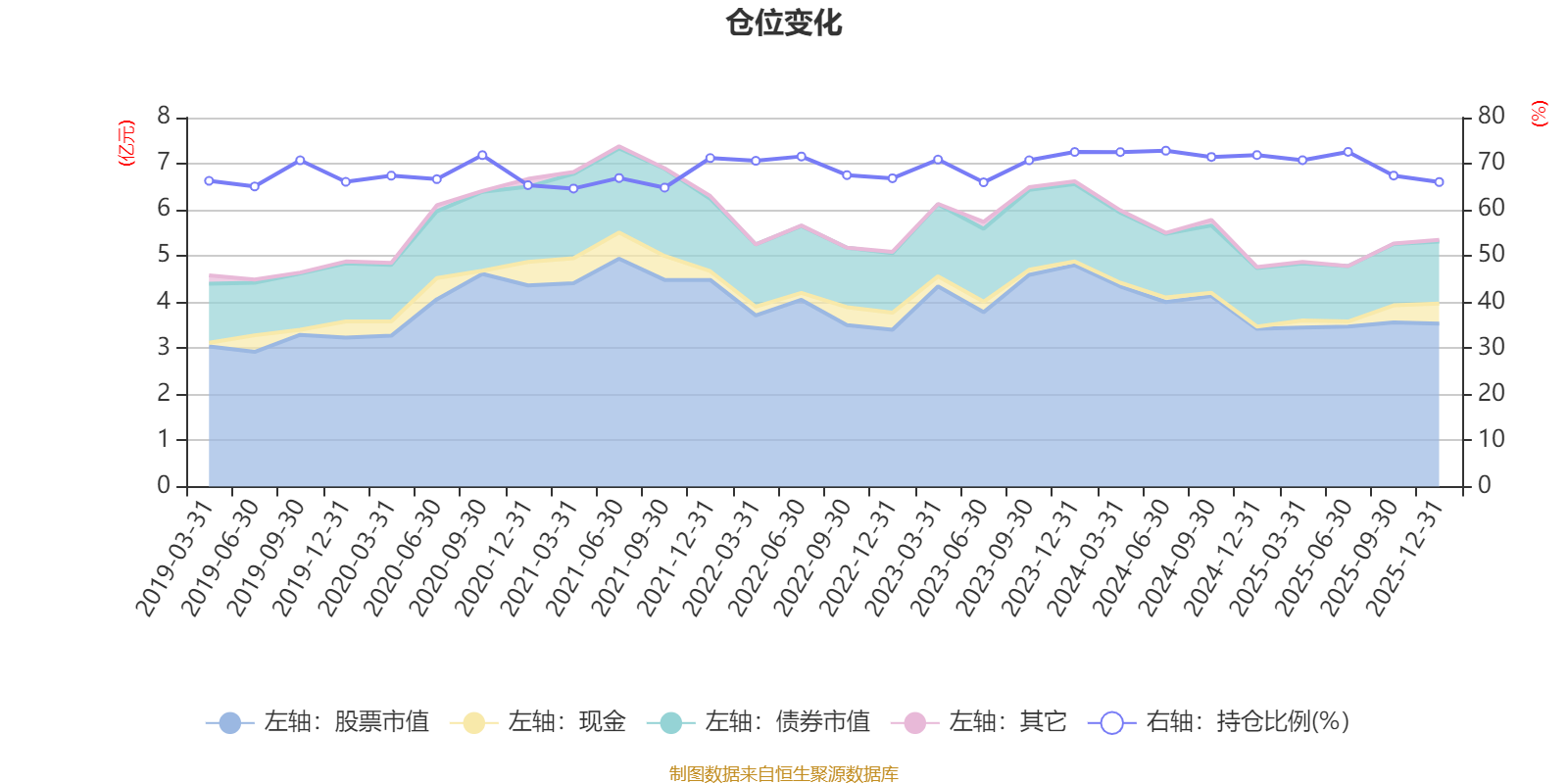 据定期报告数据统计,近三年平均股票仓位为70.47%,同类平均为67.52%。2024年上半年末基金达到72.83%的最高仓位,2021年一季度末最低,为64.62%。