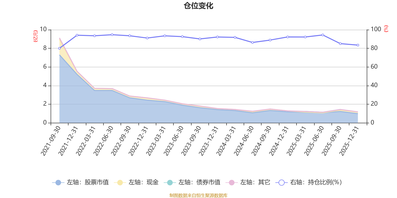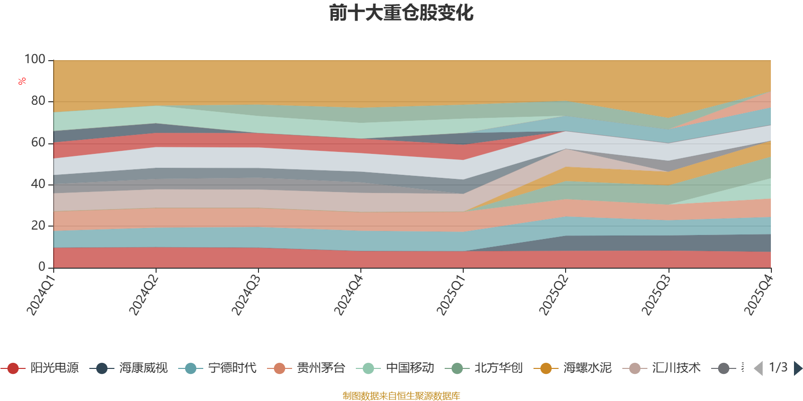 该基金持股集中度较高,近2年前十大重仓股集中度长期超过60%。截至2025年末,基金十大重仓股分别是北方华创、中国移动、贵州茅台、海康威视、海尔智家、宁德时代、龙佰集团、亿纬锂能、海螺水泥、阳光电源。