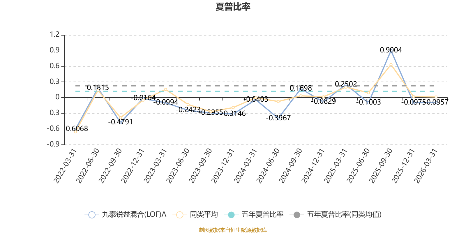 截至4月8日,九泰锐益混合(LOF)A近三个月复权单位净值增长率为-5.91%,位于同类可比基金1103/1287;近半年复权单位净值增长率为-8.10%,位于同类可比基金1146/1286;近一年复权单位净值增长率为30.78%,位于同类可比基金683/1286;近三年复权单位净值增长率为-7.91%,位于同类可比基金1078/1286。