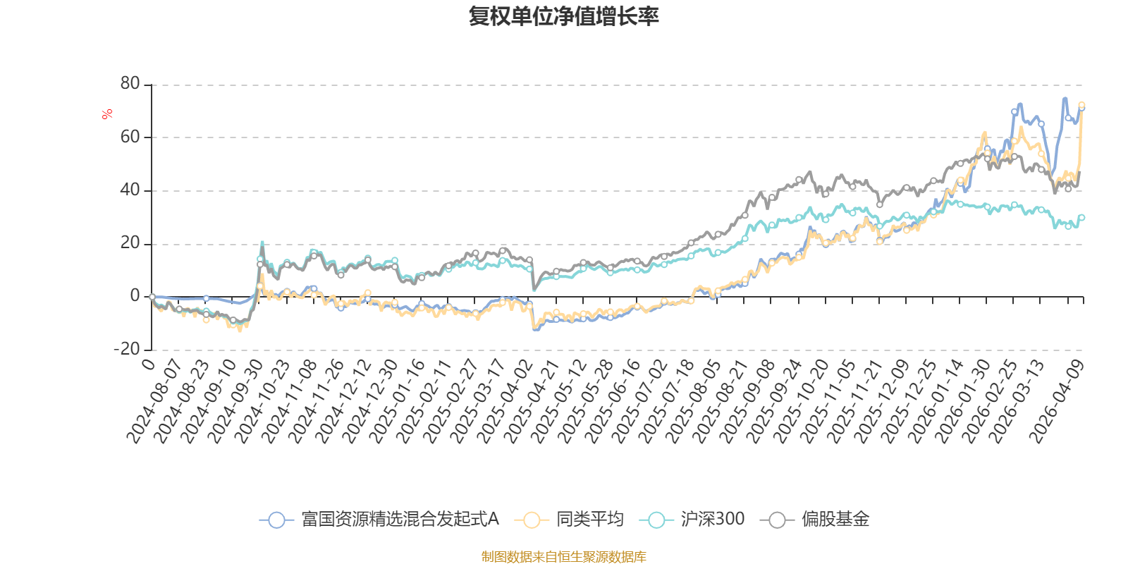 截至4月9日,富国资源精选混合发起式A近三个月复权单位净值增长率为22.13%,位于同类可比基金1/49;近半年复权单位净值增长率为35.11%,位于同类可比基金5/49;近一年复权单位净值增长率为95.55%,位于同类可比基金16/48。
