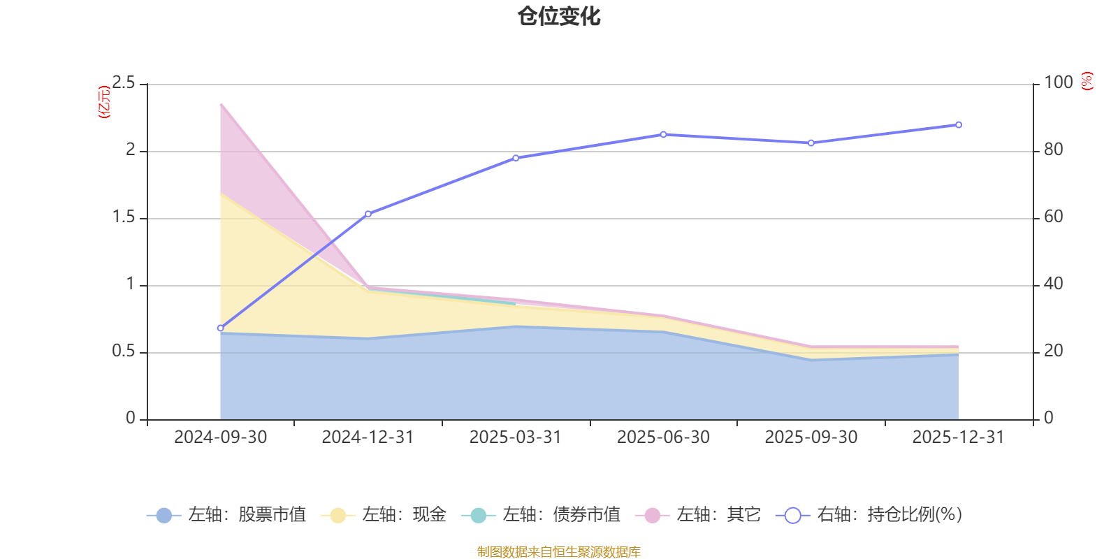 据定期报告数据统计,成立以来平均股票仓位为70.22%,同类平均为86.41%。2025年末基金达到87.79%的最高仓位,2024年三季度末最低,为27.19%。