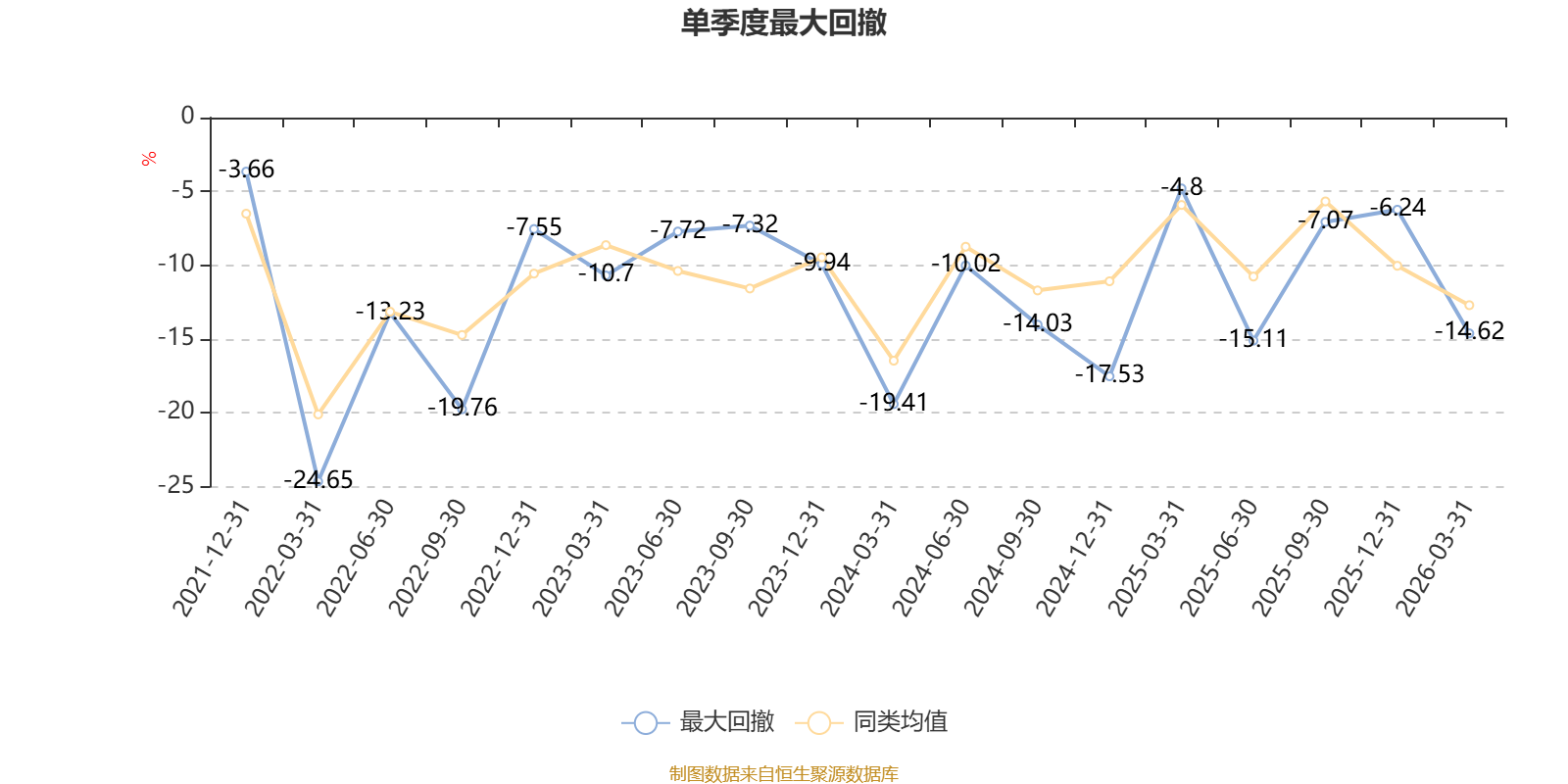 截至4月8日,基金近三年最大回撤为30.57%,同类可比基金排名211/550。单季度最大回撤出现在2022年一季度,为24.65%。