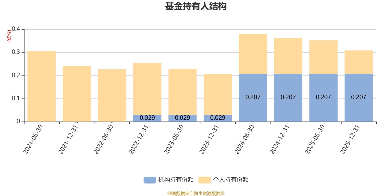 截至2025年12月31日,基金持有人共计679户,合计持有3091.18万份。其中管理人员工持有5.52万份,占比0.18%,机构持有份额占比66.90%,个人投资者占比33.10%。