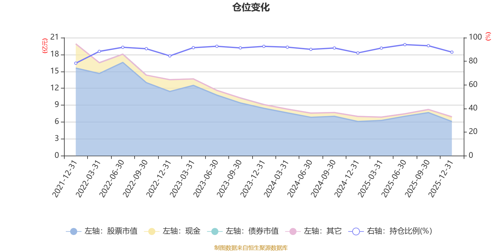 据定期报告数据统计,近三年平均股票仓位为91.22%,同类平均为85.83%。2025年上半年末基金达到94.08%的最高仓位,2021年末最低,为78.39%。