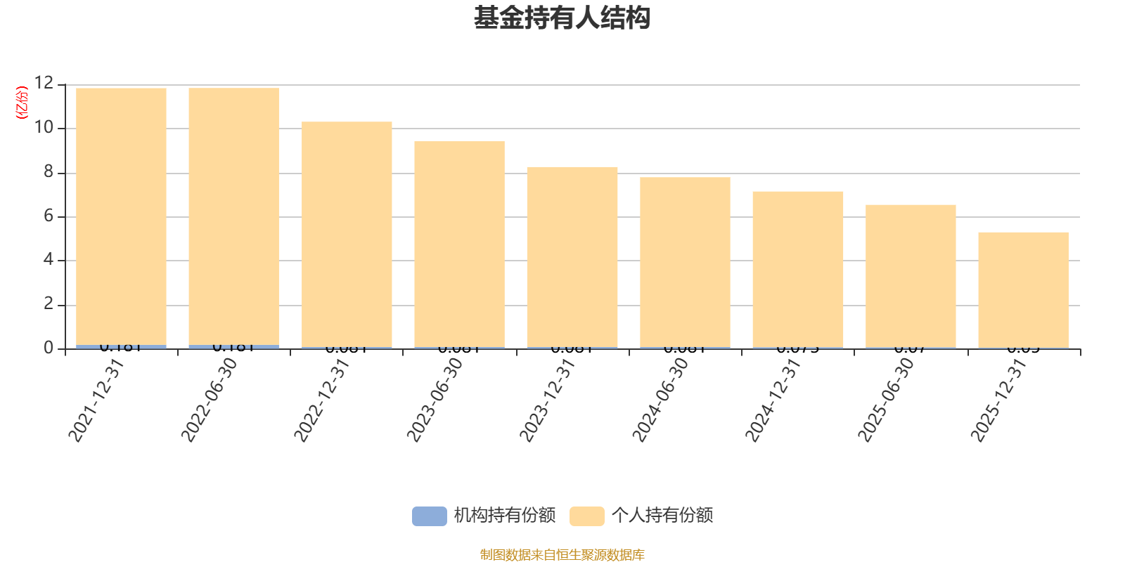 截至2025年12月31日,基金持有人共计5407户,合计持有5.28亿份。其中管理人员工持有160.35万份,占比0.30%,机构持有份额占比0.95%,个人投资者占比99.05%。