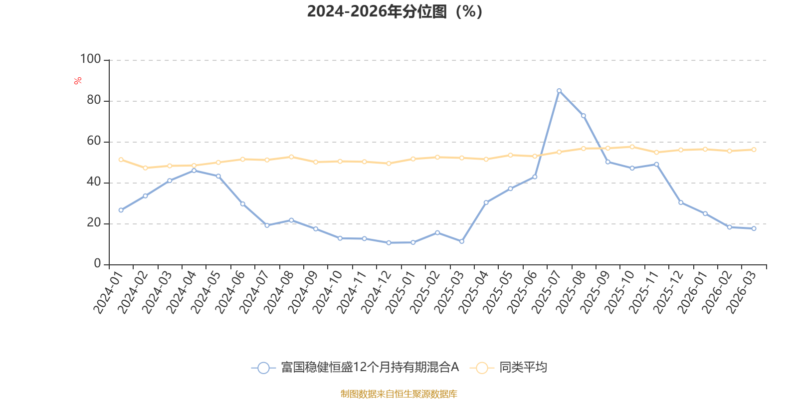 通过所选区间该基金净值增长率分位图,可以观察该基金与同类基金业绩比较情况。图为坐标原点到区间内某时点的净值增长率在同类基金中的分位数。