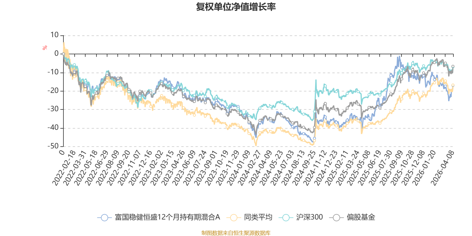 截至4月8日,富国稳健恒盛12个月持有期混合A近三个月复权单位净值增长率为-5.29%,位于同类可比基金511/621;近半年复权单位净值增长率为-9.85%,位于同类可比基金549/621;近一年复权单位净值增长率为39.38%,位于同类可比基金324/618;近三年复权单位净值增长率为-1.99%,位于同类可比基金434/559。