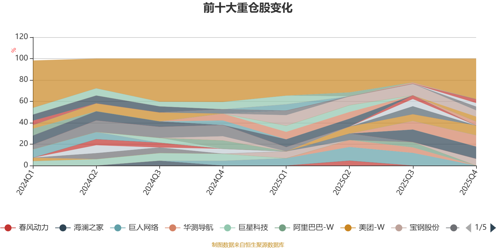 该基金持股集中度较高。截至2025年末,基金十大重仓股分别是科沃斯、九号公司、海大集团、宝钢股份、美的集团、腾讯控股、立讯精密、国光股份、贵州茅台、奕瑞科技。