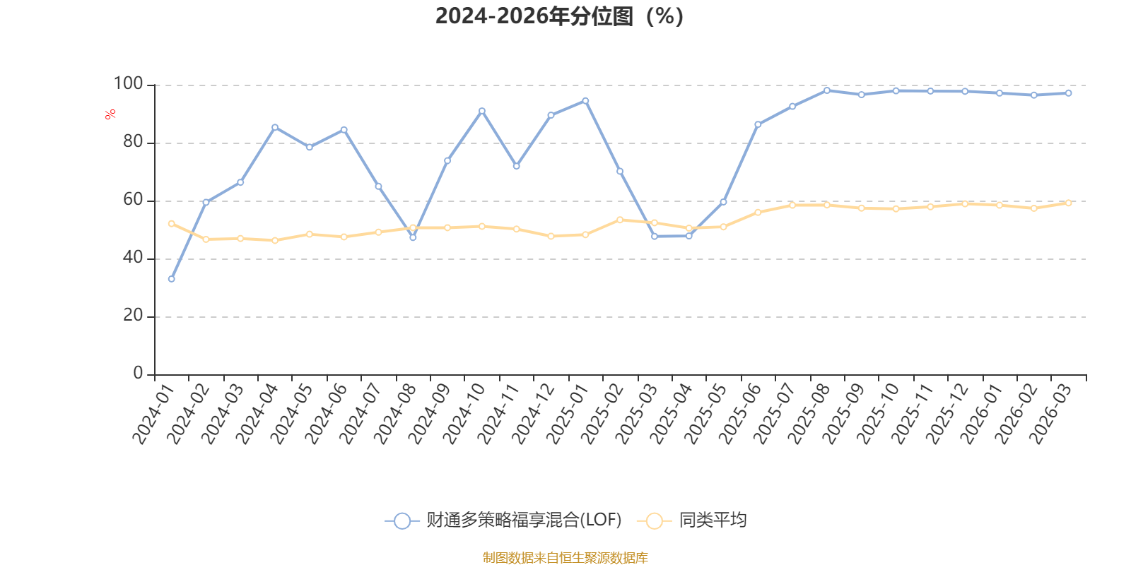 通过所选区间该基金净值增长率分位图,可以观察该基金与同类基金业绩比较情况。图为坐标原点到区间内某时点的净值增长率在同类基金中的分位数。