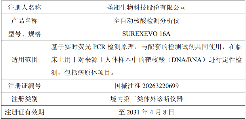 原标题:圣湘生物:全自动核酸检测分析仪获注册证
