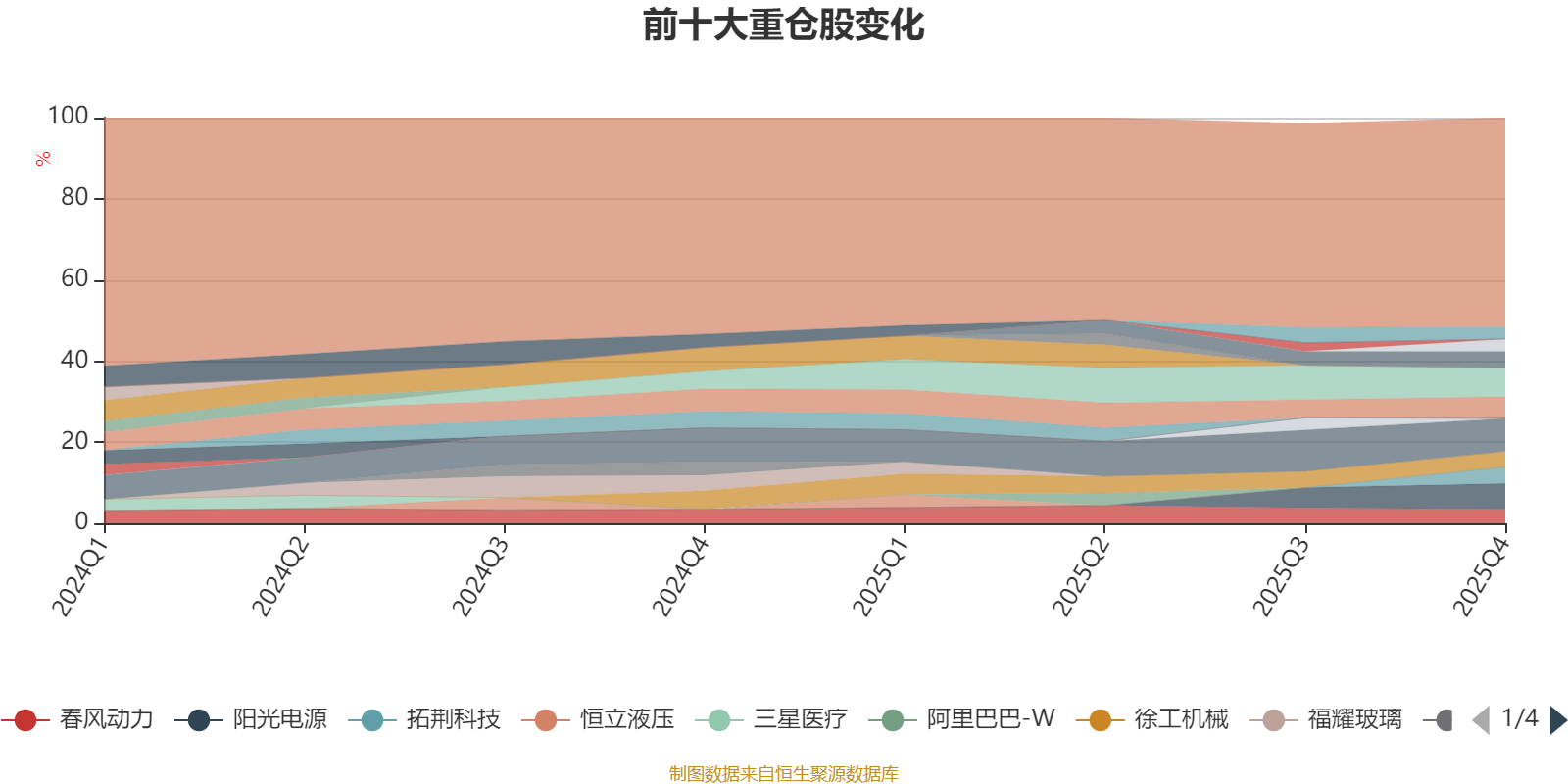 截至2025年末,基金十大重仓股分别是宁德时代、腾讯控股、阳光电源、久立特材、拓荆科技、生益科技、徐工机械、春风动力、中际旭创、中芯国际。