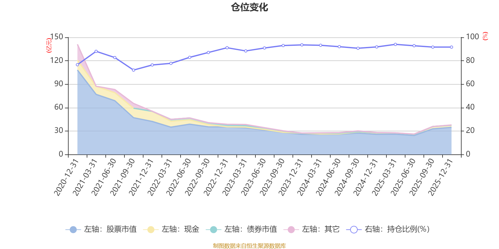 据定期报告数据统计,近三年平均股票仓位为91.99%,同类平均为86.17%。2025年一季度末基金达到94%的最高仓位,2021年三季度末最低,为72.07%。