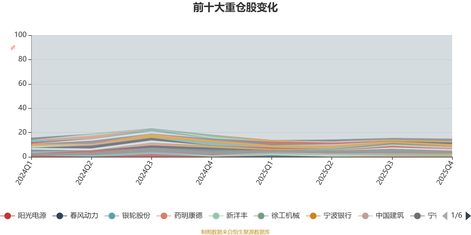 截至2025年末,基金十大重仓股分别是宁德时代、美的集团、紫金矿业、宁波银行、苏美达、中创智领、徐工机械、中国平安、立讯精密、分众传媒。